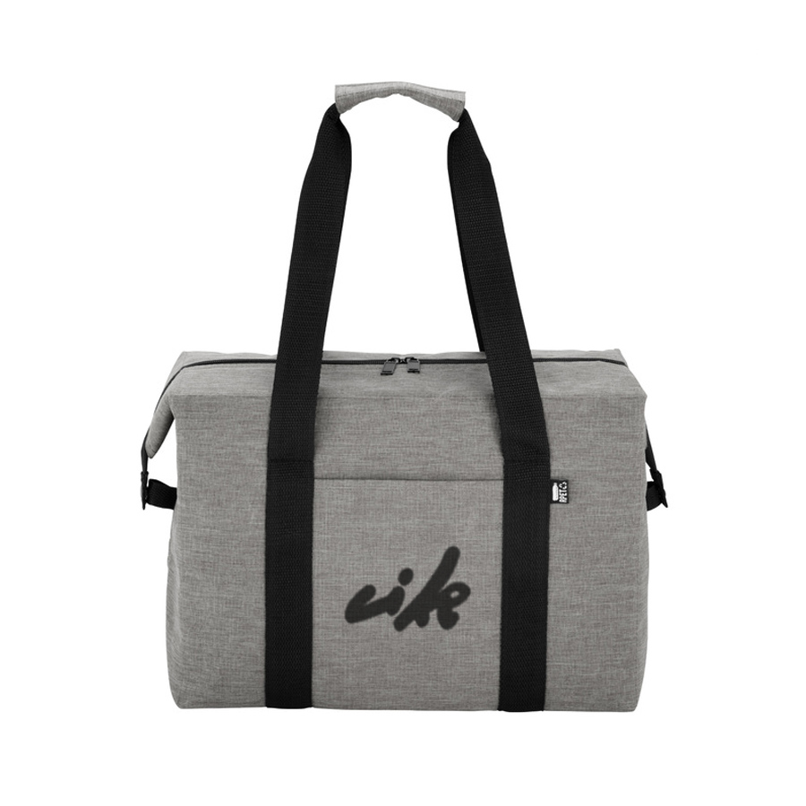 Bolso térmico. Cierre posterior con dos tiradores. Medidas: 37,5 x 20 x 26 cm. Capacidad: 19 litros Materiales: Exterior de poliéster 300D recubierto de RPET. Interior de espuma de polietileno recubierto con láminas ...